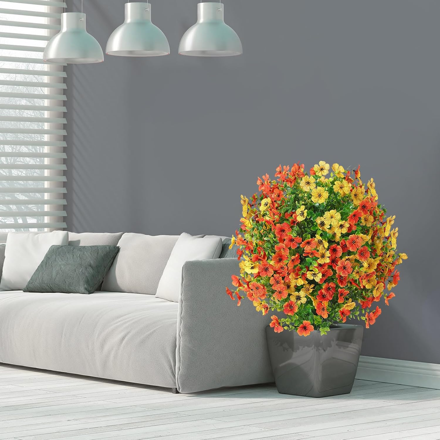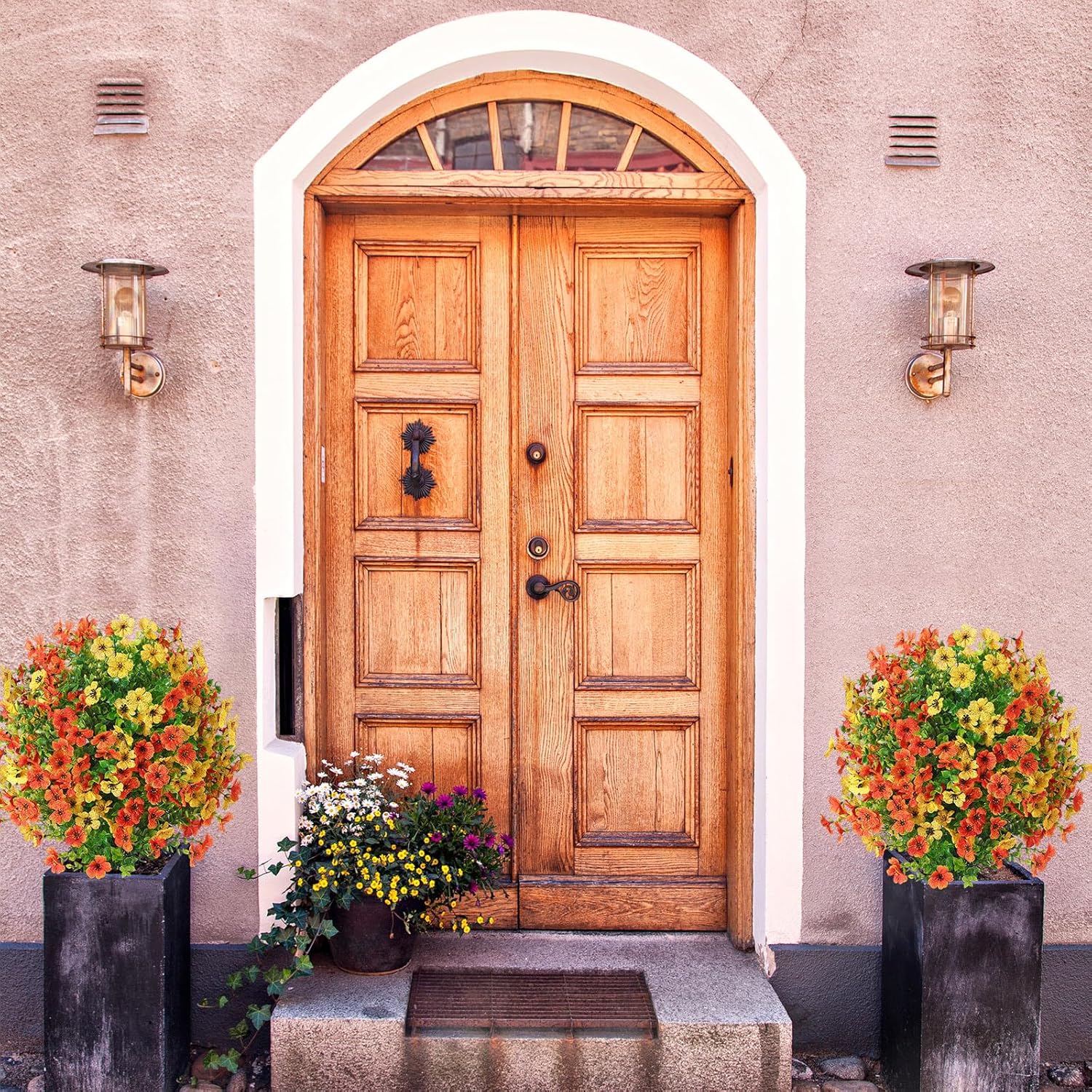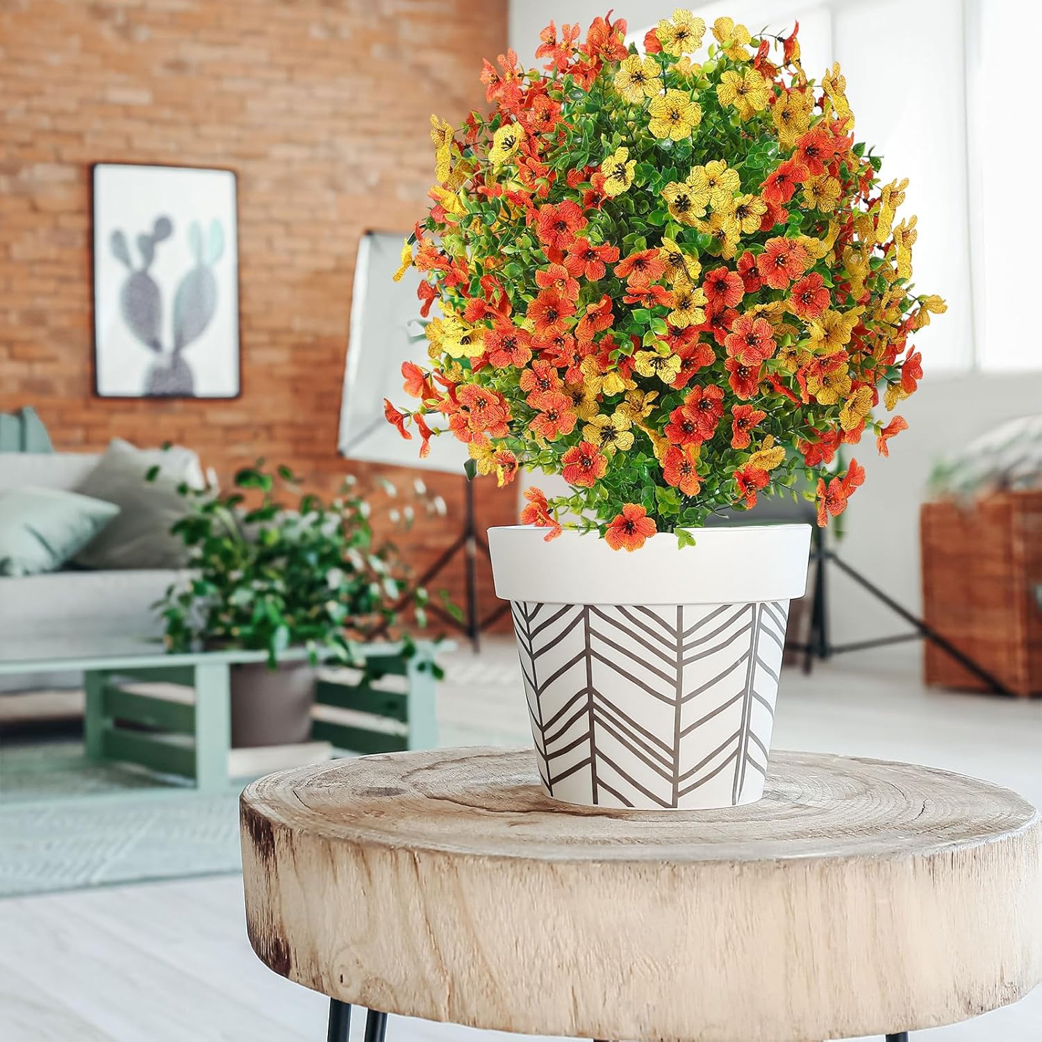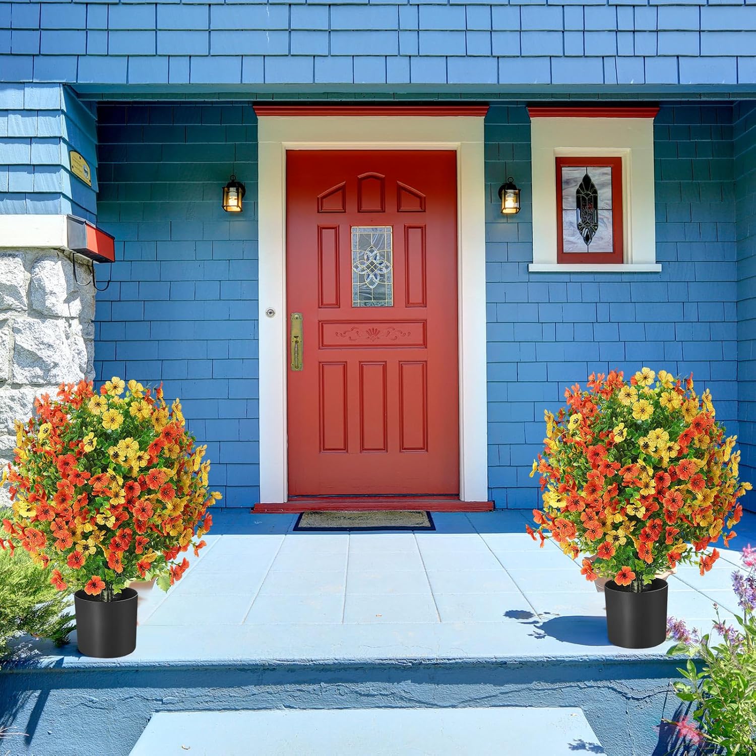 2 Pack 21.6'' Artificial Topiary Ball Trees with Flowers UV Protected Outdoor Faux Potted Plants with Cement Pot Faux Greenery Shrubs for Front Garden (Autumn Colors,Mandala Flower Tree)