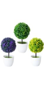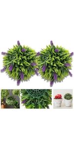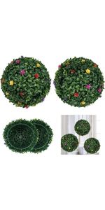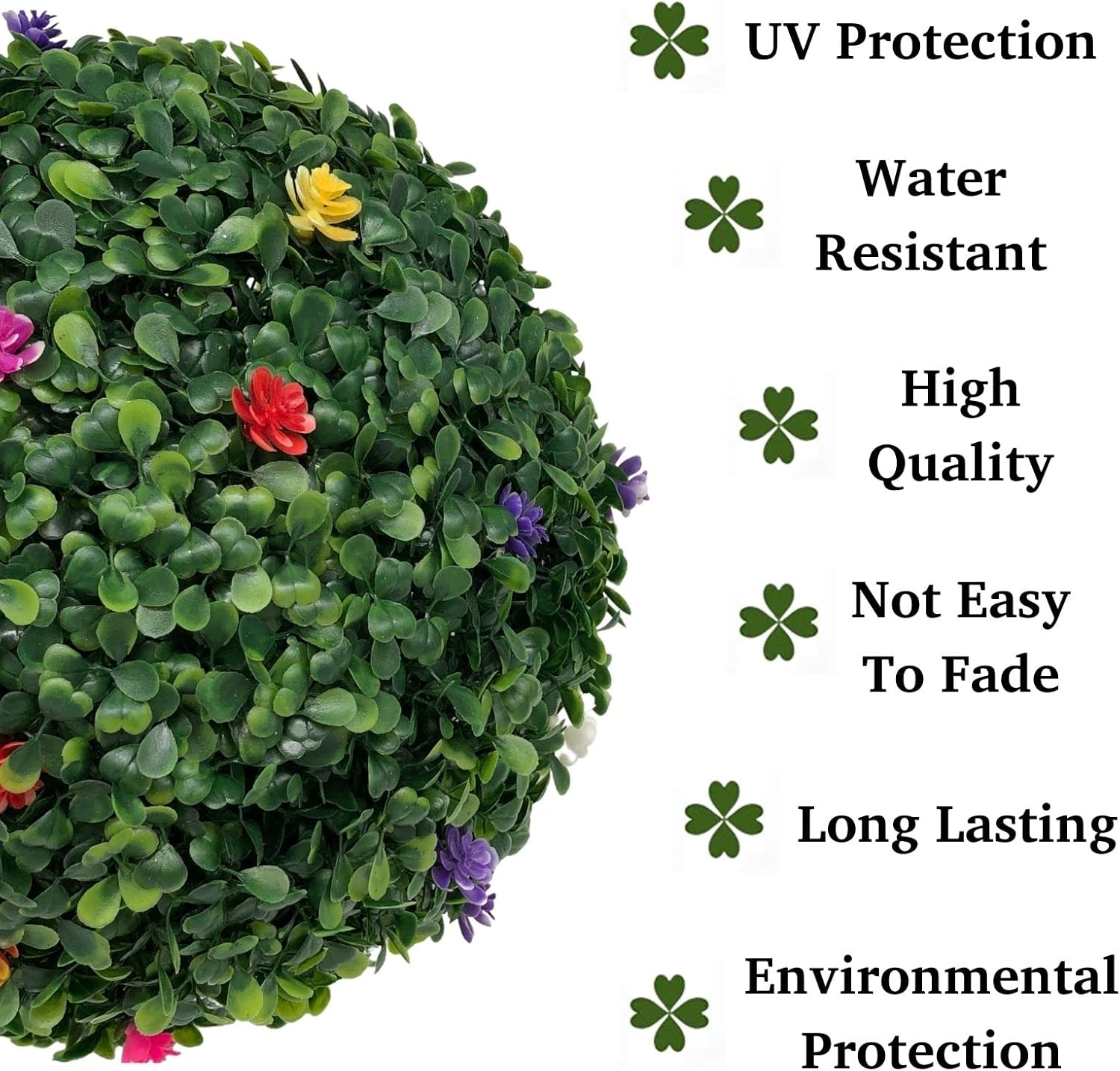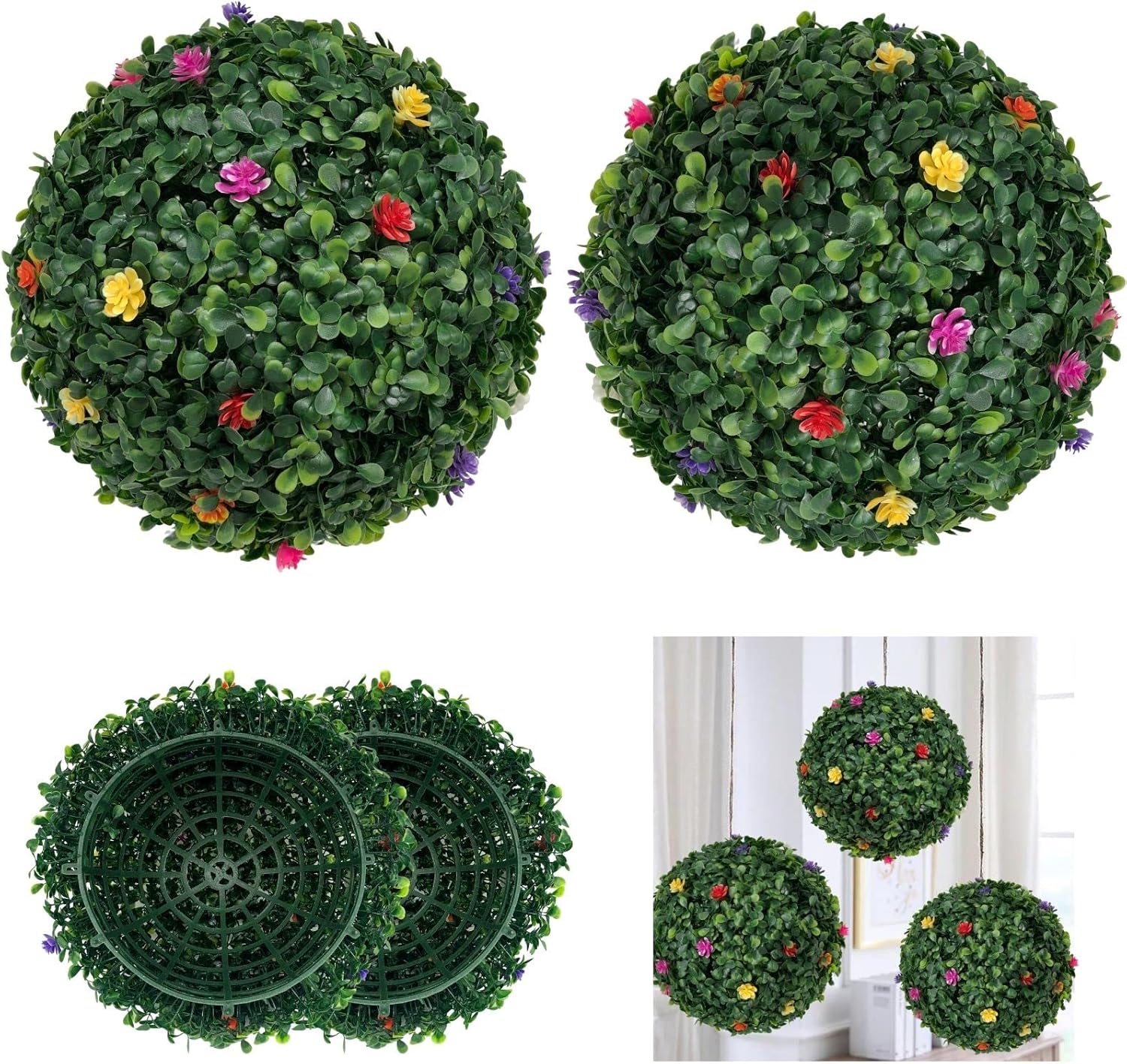 2PCS Artificial Boxwood Topiary Ball with Flowers 11 INCH 3 Layers Hanging Topiary Ball for Home Garden Wedding Party Decor Environmental UV Protected Faux Boxwood Decorative Ball