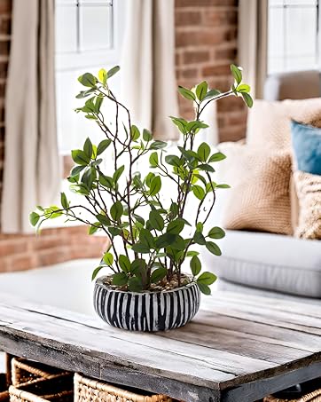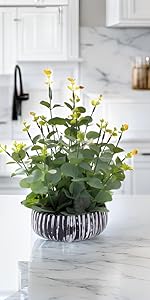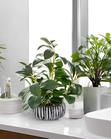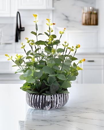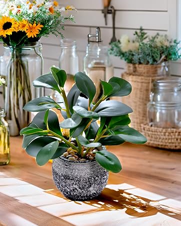 AlphaAcc Artificial Plants Decor Greenery Fake Succulents Indoor Potted Fake Plant with Rustic Black Clay Planter for Farmhouse Room Bathroom Bedroom Kitchen Office Table Desk Decor