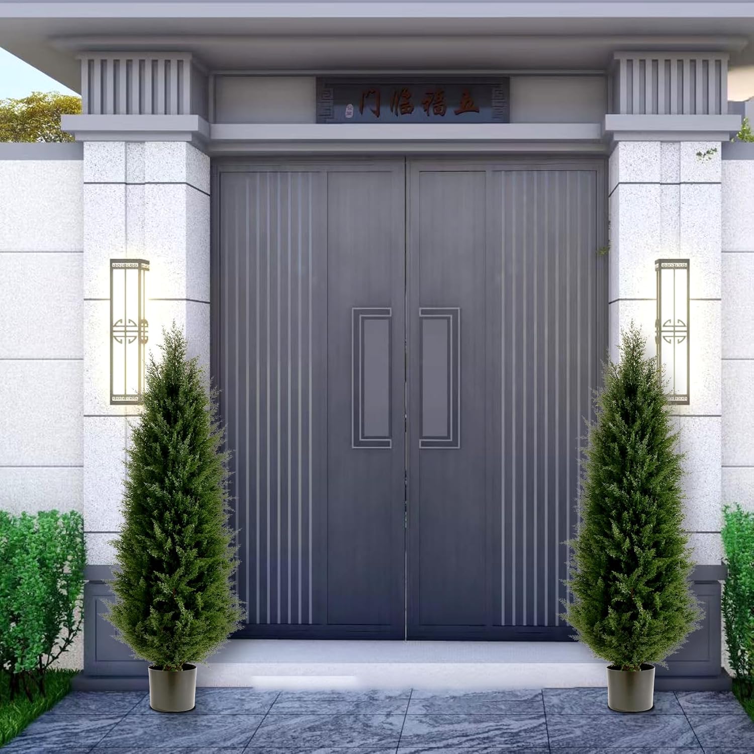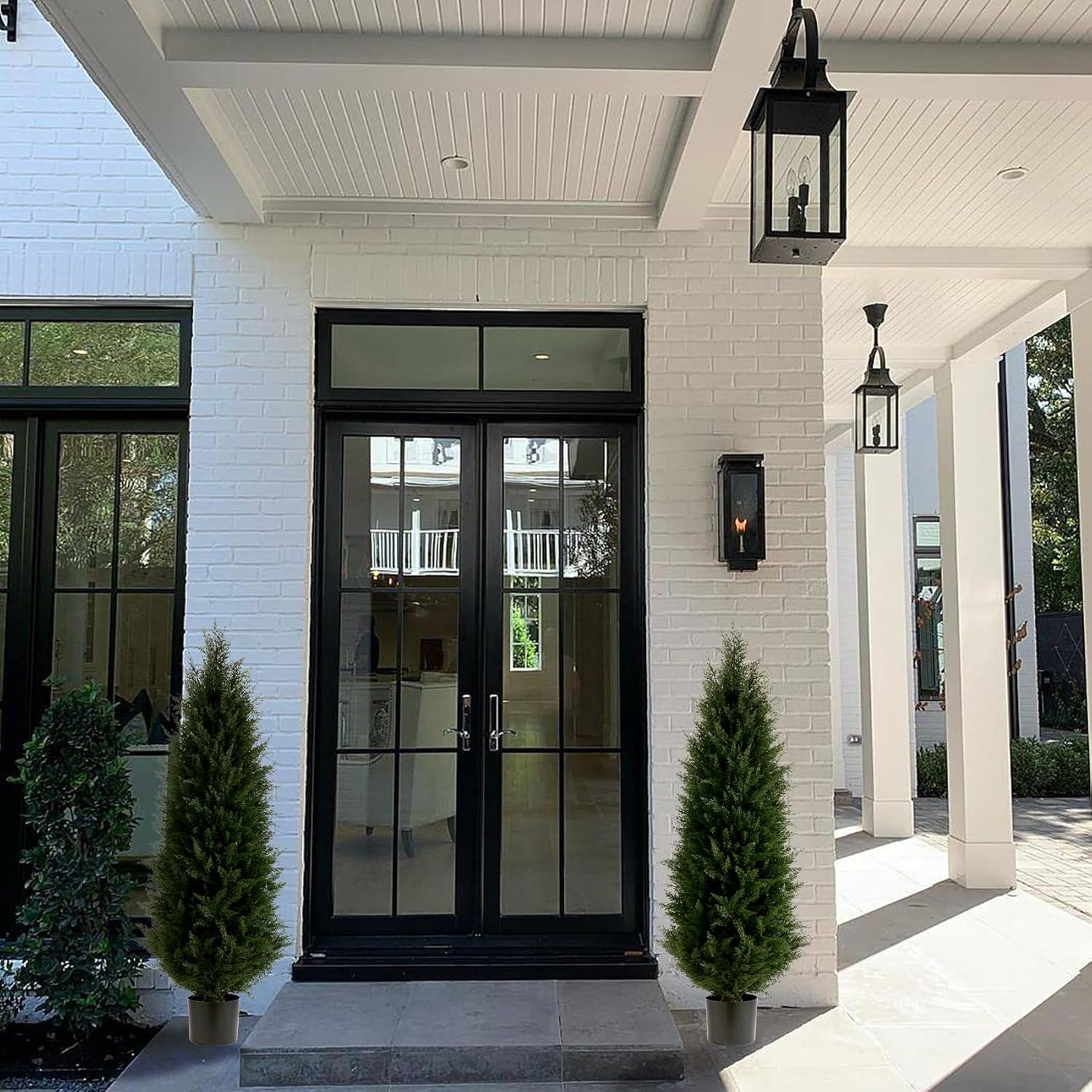 Artificial Topiary Tree Set of 2 Artificial Cedar Trees 4FT Uv Resistant Pine Potted Artificial Plants Outdoor Realistic Fake Plants Front Porch Decor Indoor Faux Cypress Trees