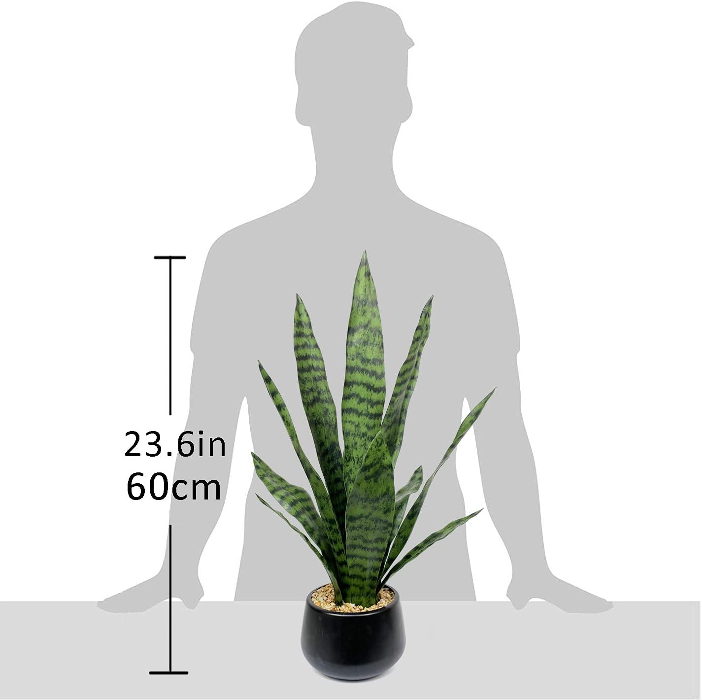 Ollain Artificial Snake Plant with Potted 23.6" Fake Plastic Sansevieria Faux Plants in Pot for Outdoor Window Box Verandah Planter Indoor Outside Home Garde Office Room Gardening Decoration
