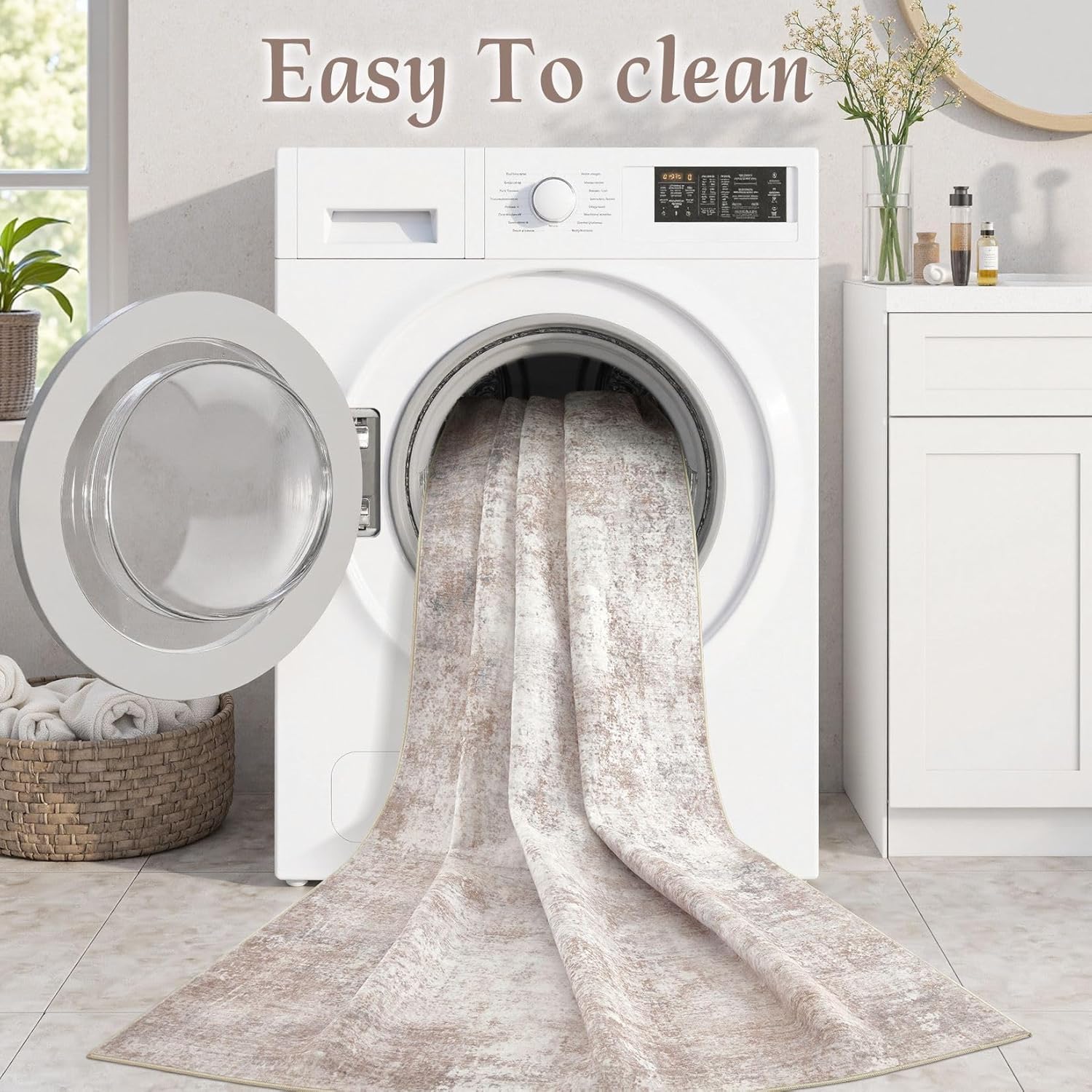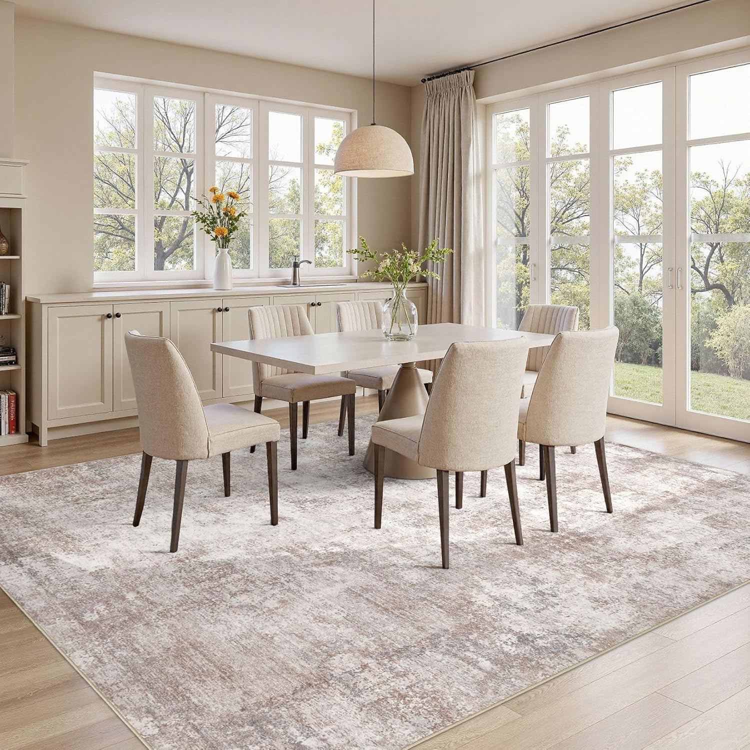 Washable 9X12 Area Rug: Modern Abstract Soft Non-Slip Indoor Rugs Home Decor - Low Pile Stain Resistant Foldable Carpet for Living Room Bedroom Dining Room Playroom Office(Brown,9'x12')