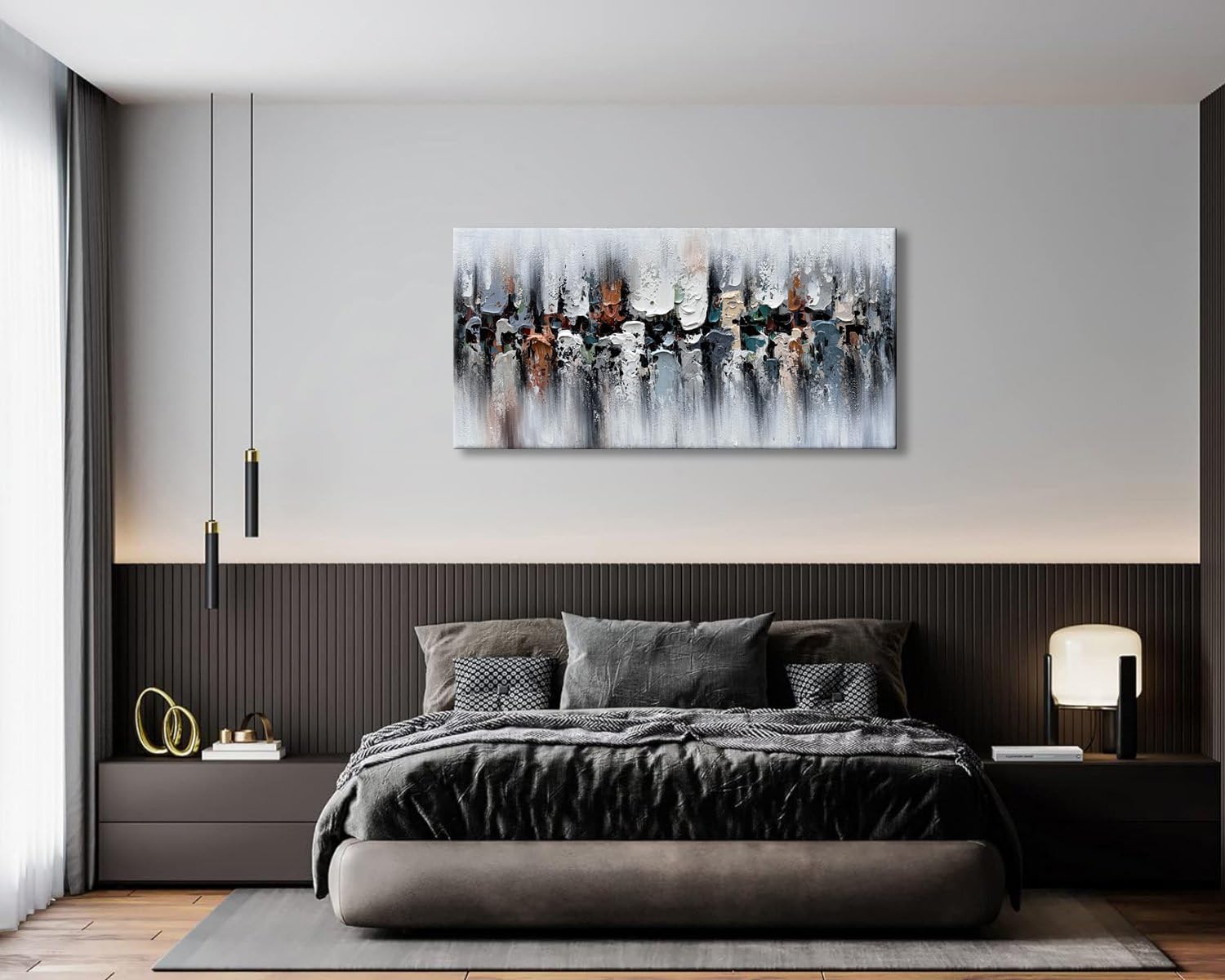 The color of this painting is very neutral, the size is also appropriate, very suitable for the living room, bedroom, dining room and other places to hang.